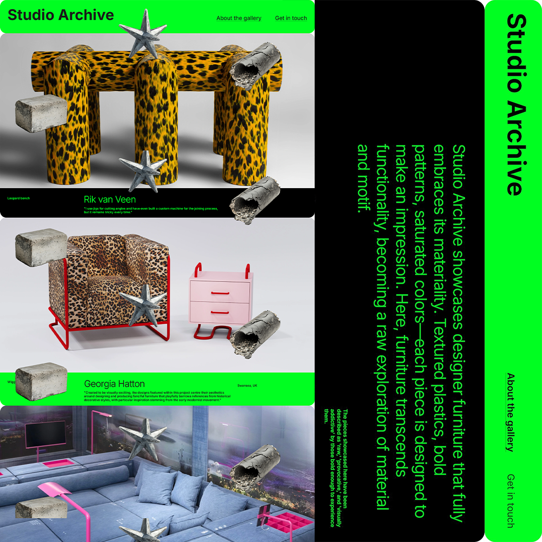 Studio Archive celebrates pieces that break the mold: textured plastics, vivid patterns, and saturated palettes.